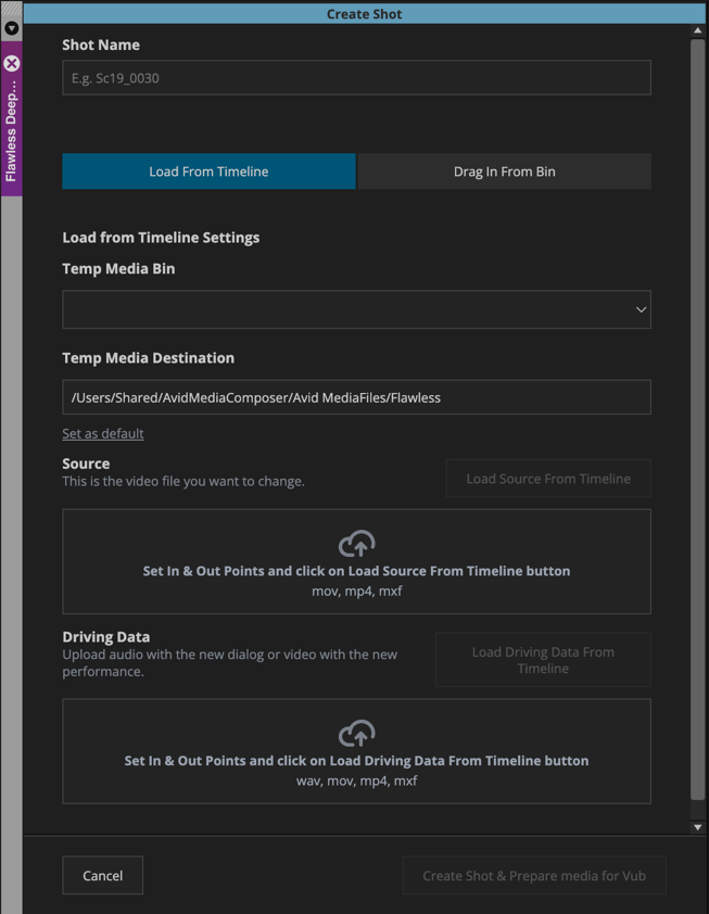 For either the Import From Timeline or Drag In From bin method, once the shot is fully set up (both source and driving data uploaded), you can Create Shot & Prepare media for Vub.