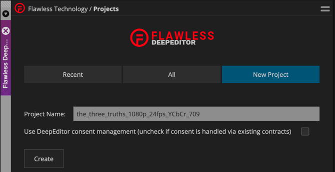 If you are logging into DeepEditor for the first time you will need to create a project. Feel free to name it whatever you want, but we recommend giving your DeepEditor project the same name as your Avid project.