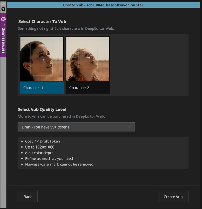 Ideal for quickly testing a visual dub idea. Draft vubs are faster to generate and lower in resolution, perfect for creative experimentation. - Higher Quality Tiers (Optional)