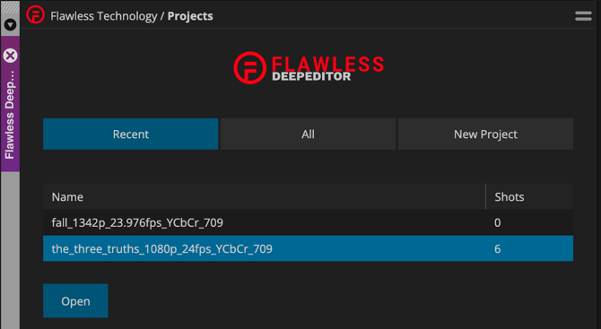 If you’ve already created a project via the DeepEditor web app, you’ll see your existing projects listed, from there select the one you want to work with.