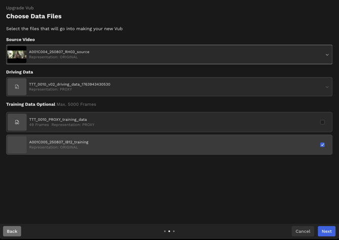 - Select your Final quality Training Data media in the Training Data Optional section, if you are using any (deselect your proxy training data).