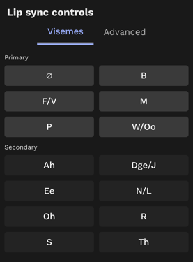 For cases where additional adjustment is required, you can access the Advanced Controls. These are individual, granular blendshape controls that allow you to finetune mouth shapes. These should be used sparingly and with caution, and only when viseme adjustments are insufficient.